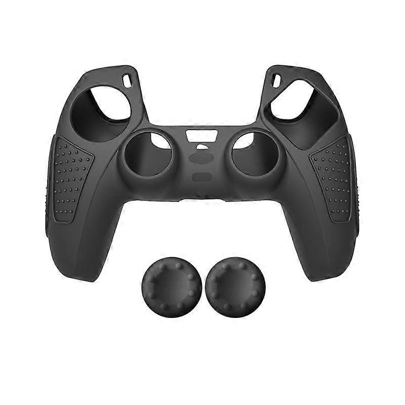 For PS5 Gamepad Silicone Protective Case, Color: Black+2 Hats