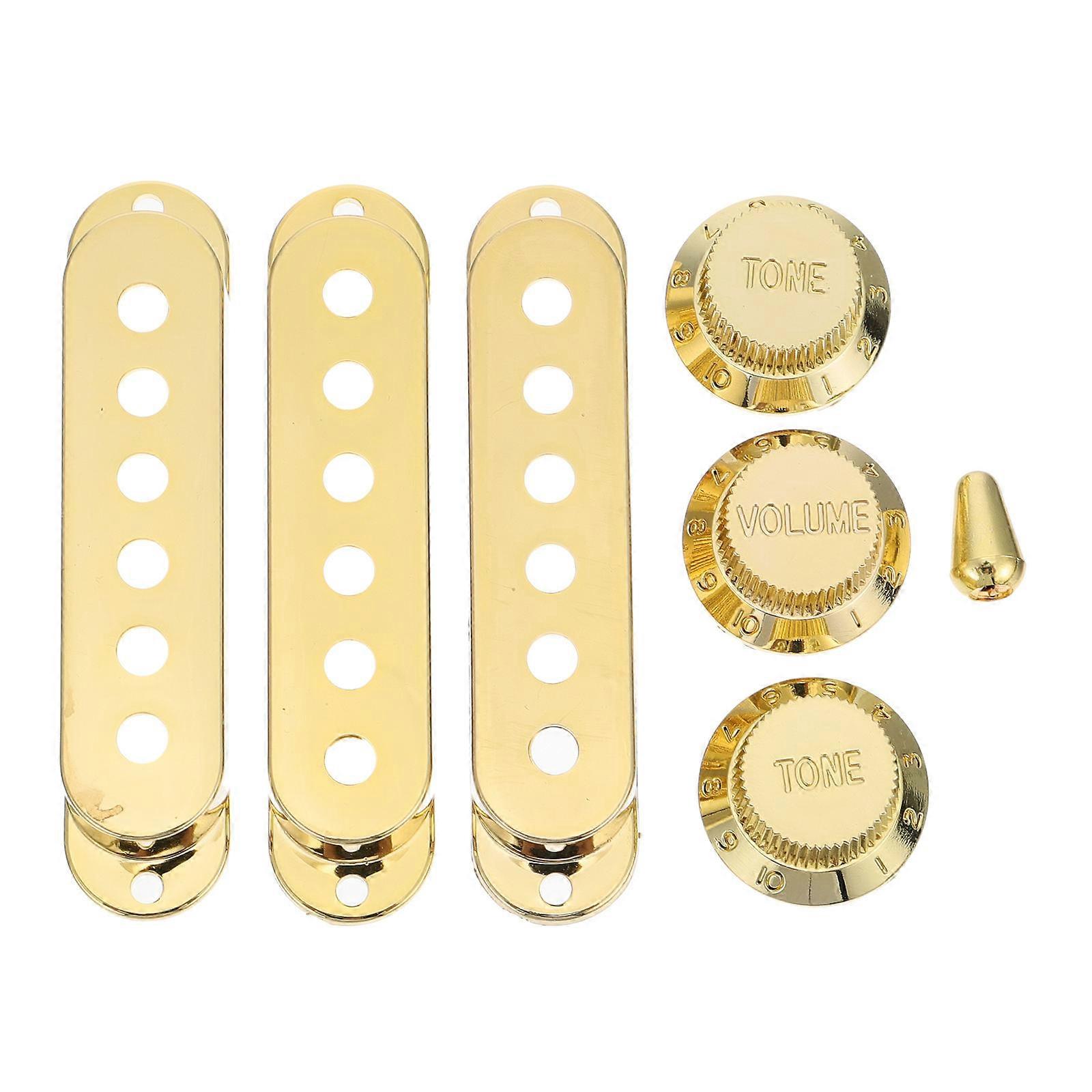 These guitar pickup protective covers are made of plastic materials, which are durable and can be used for a long time. They are mainly used to the guitar pickup being polluted by or being broken. They are very practical and durable. Features -Color: Golden. -Material: Plastic. -Size: About 8.40X1.80X1.40cm/3.30X0.71X0.55inch. -Wear-resistant, not easy to deform and break. -They can be used to replace parts of old guitar pickups. -These guitar pickup covers aredurable and practical for use. -Prevent sweat or water the pickup when playing. -Our electric guitar pickup covers can prevent and have a decorative effect. Package list: 3 x pickup covers 3 x shell knob caps 1 x hat