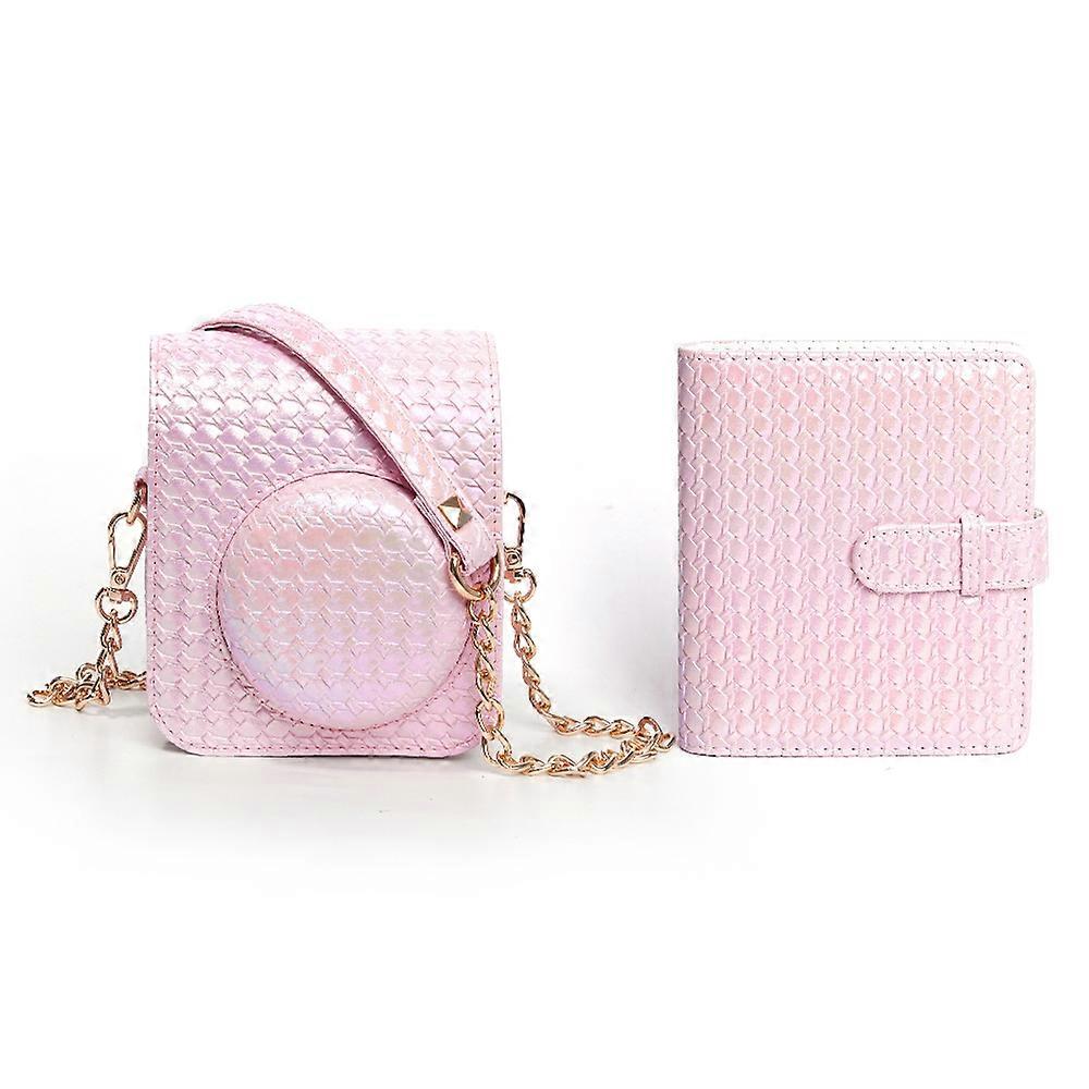 For FUJIFILM instax mini 12 Colorful Woven Leather Case Full Body Camera Bag + Photo Album with Strap
