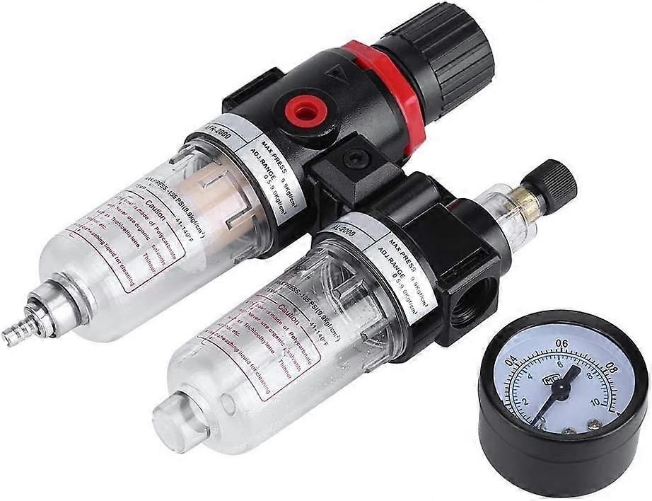 G1/4'' Air Filter Regulator Lubricator Water Pressure Compressor Moisture Trap Oil Separator Filter for Compressor and Pneumatic Tools(1pcs, black)
