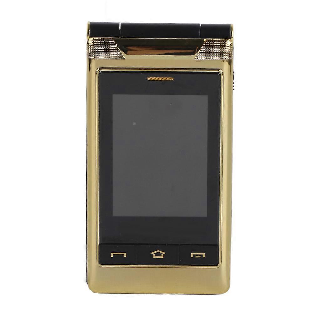 G10 C Flip Phone Dual Screen Big Button Large Volume Gold with Protective Case Elderly Flip Phone for Gift EU Plug