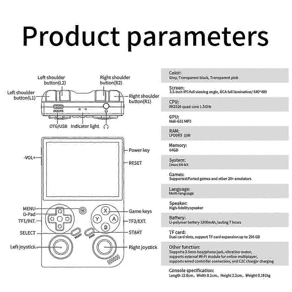 G350 Retro Handheld Game Console 64GB 4000 Games Linux 64-Bit System 3.5Inch IPS RK3326 Portable Po