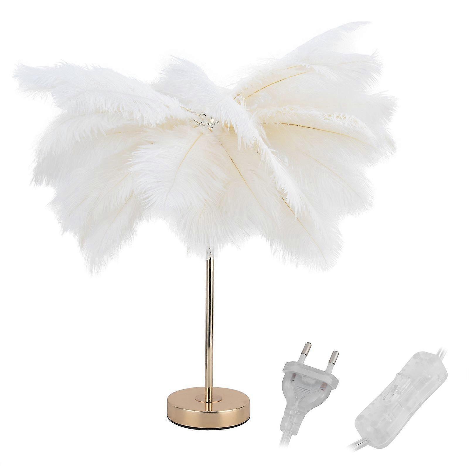 G4 Ostrich Feather Table Lamp Night Light Bedside Light Decoration Lamp for Bedroom Wedding RoomWhite EU Plug 220V