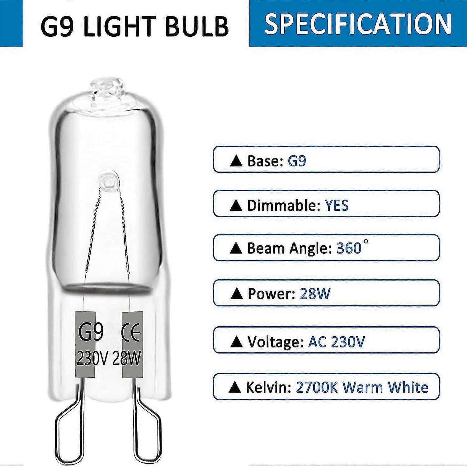 G9 Halogen Bulb 28W 230V, 370LM 2700K Warm White Dimmable, G9 Capsule Bulbs,Pack of 10