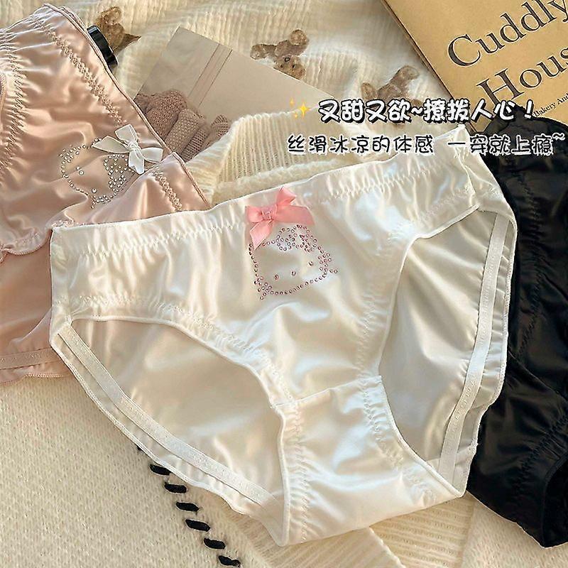 GaiBoSi Hello Kitty Girls' Beauty Silky Smooth Satin Underwear Briefs Women's Low Waist Ruffle Comfortable Summer Thin Triangle Panties