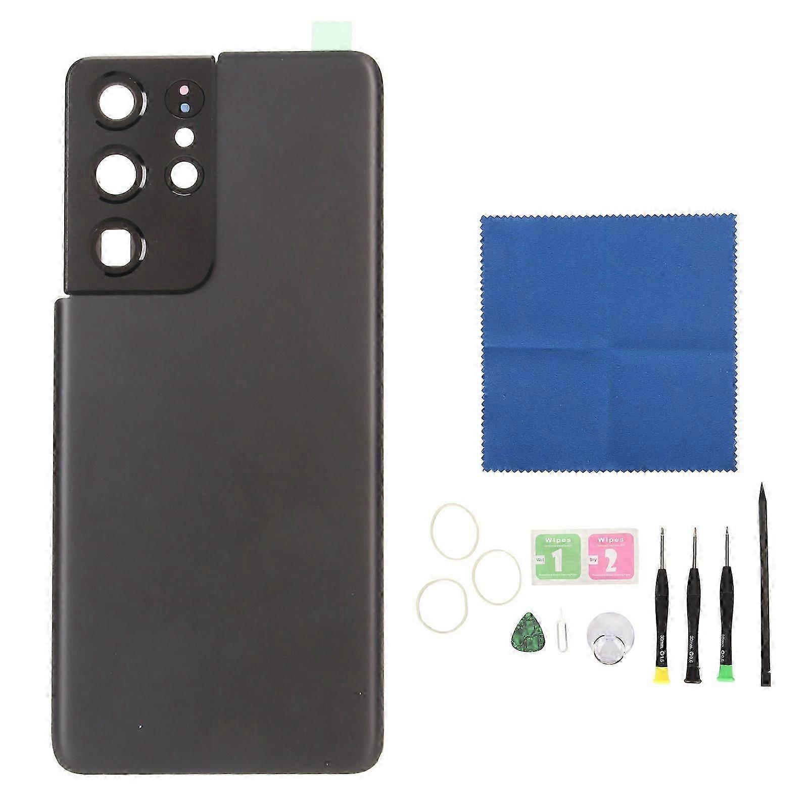 Back Glass Cover Replacement With Pre Installed Camera Lens and Tape Parts Replacement for Galaxy S21 Ultra Black