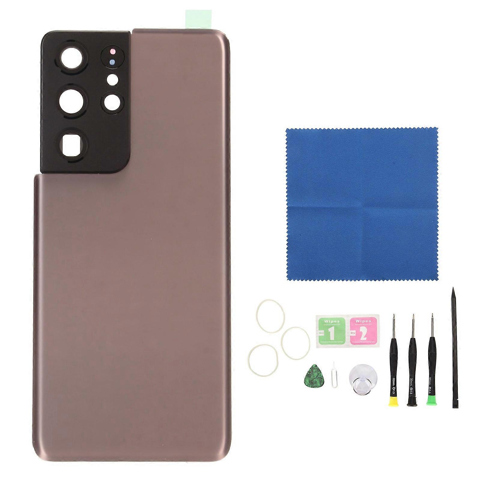 Back Glass Cover Replacement With Pre Installed Camera Lens and Tape Parts Replacement for Galaxy S21 Ultra Brown