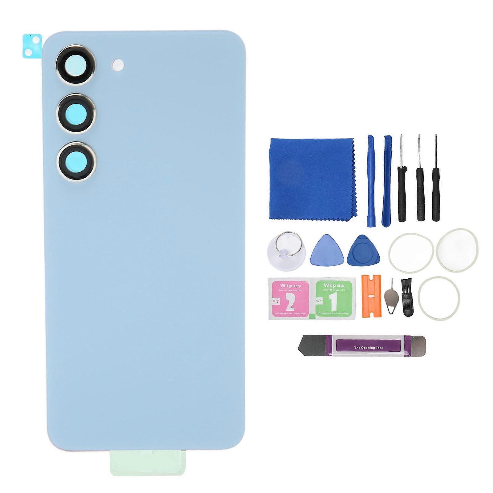 Replacement Back Glass Phone Rear Glass Housing with Pre Installed Camera Lens Tape for Galaxy S23 Blue