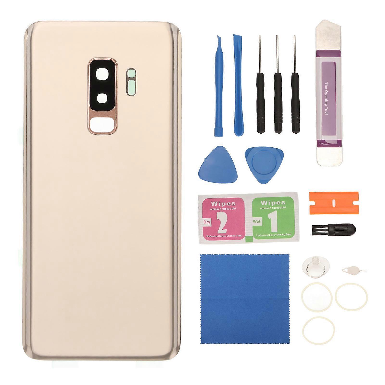 Battery Back Glass Cover Replacement Rear Door Housing with Pre Installed Camera Lens Tape for Galaxy S9+ Plus G965 Gold