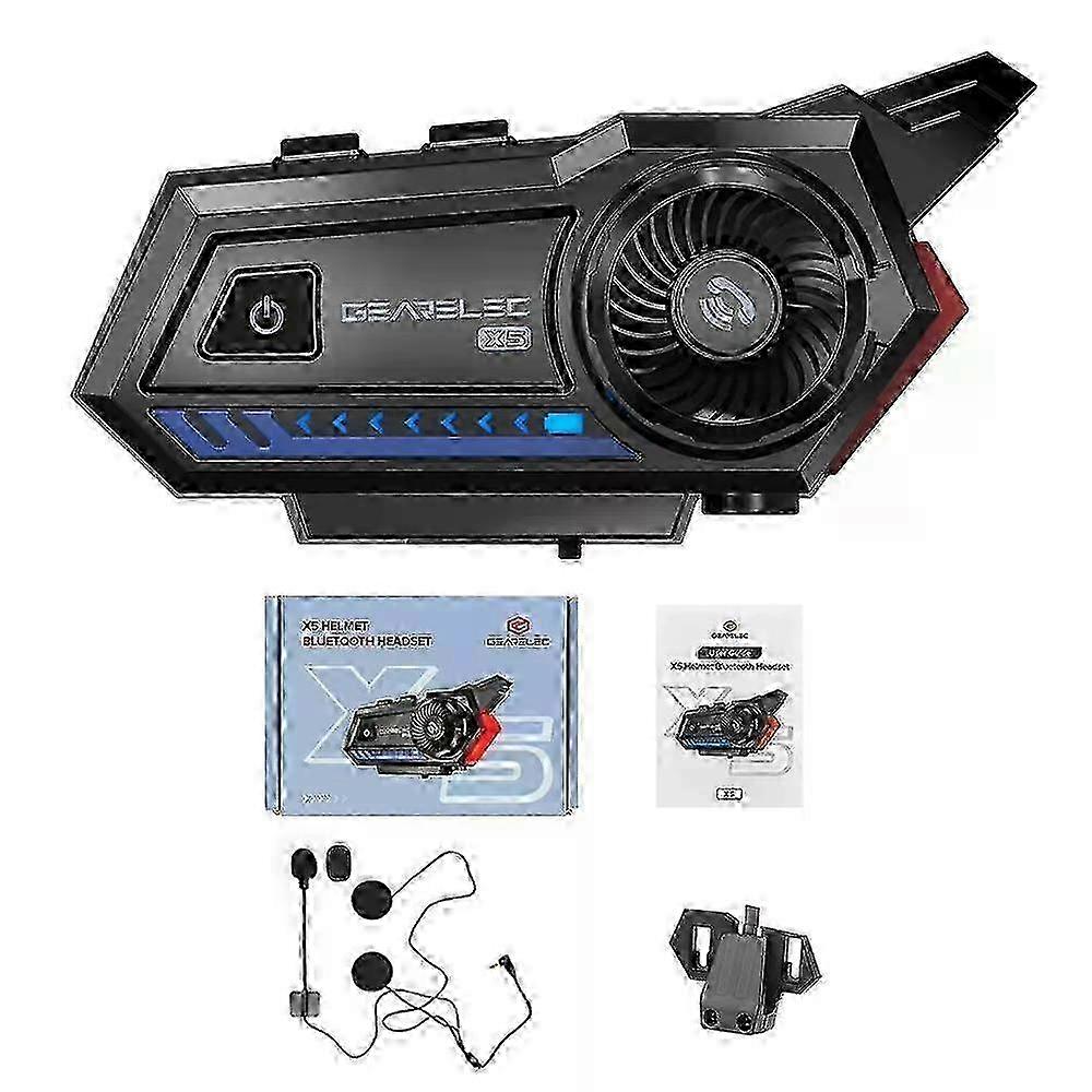 GEARELEC X5 Motorcycle Helmet Headset BT 5.2 Waterproof Wireless Headphones Voice Control Roise Reduction FM Radio Warning Light