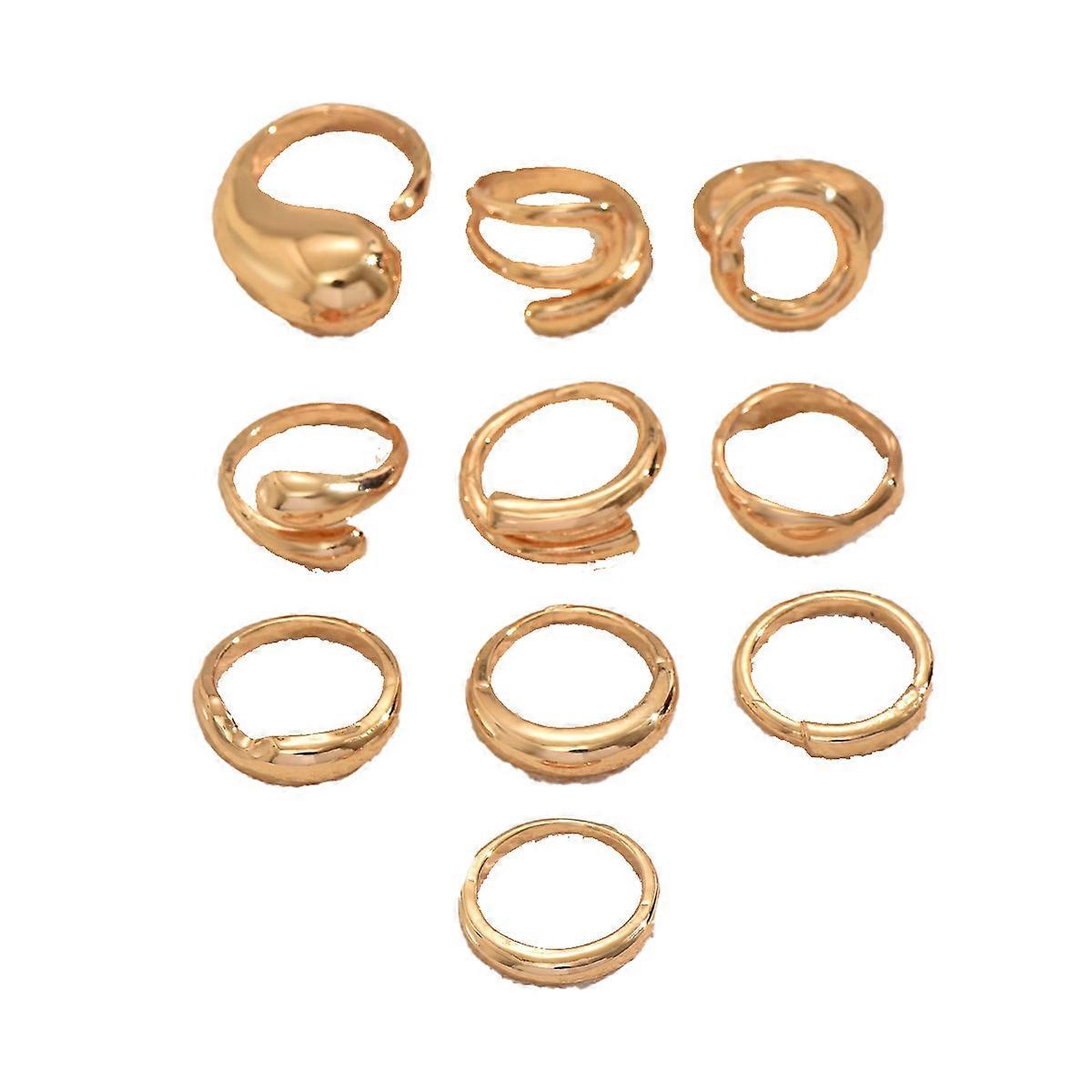 Geometric Ring Set, Open Adjustable Design Elegant Versatile Rings