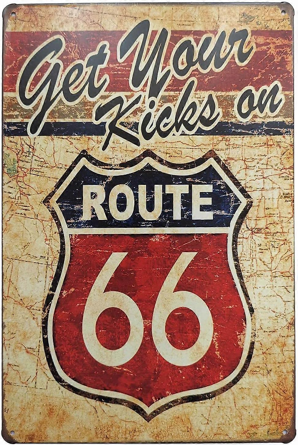 Get Your Kicks Route 66 Metal Retro Wall Plaque Decor Vintage Tin Sign 12 X 8