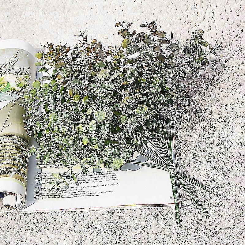 Ghyt 3pcs Artificial Plastic Plants Leaves Green Eucalyptus Branch For Garden Vase Home
