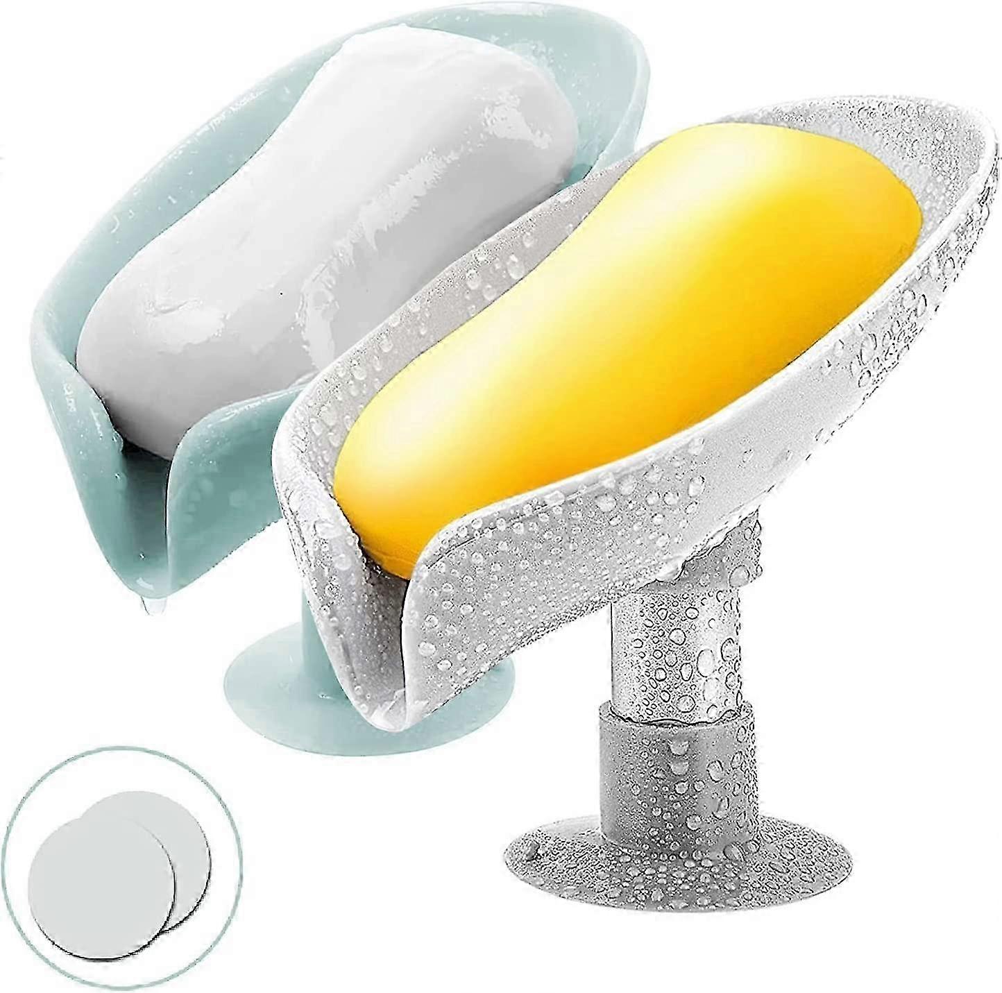 Gllbtpt 2 Pack Soap Dishs Leaf Shape Soap Holder With Suction Cup Self-draining To Keep Soap Dry Easy To Clean Stop Mushy Soap For Bathroom Shower Kit