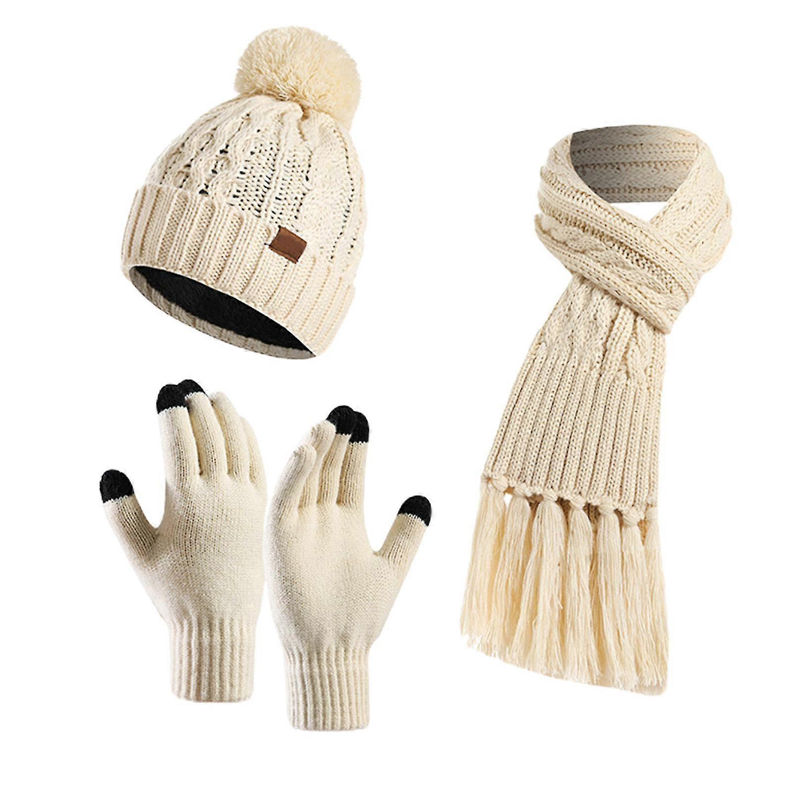 Globa Shop Beanie Hat Scarf Gloves Set Unisex Slouchy Scarf Warm Knitted Hat Gloves For Outdoor Beige