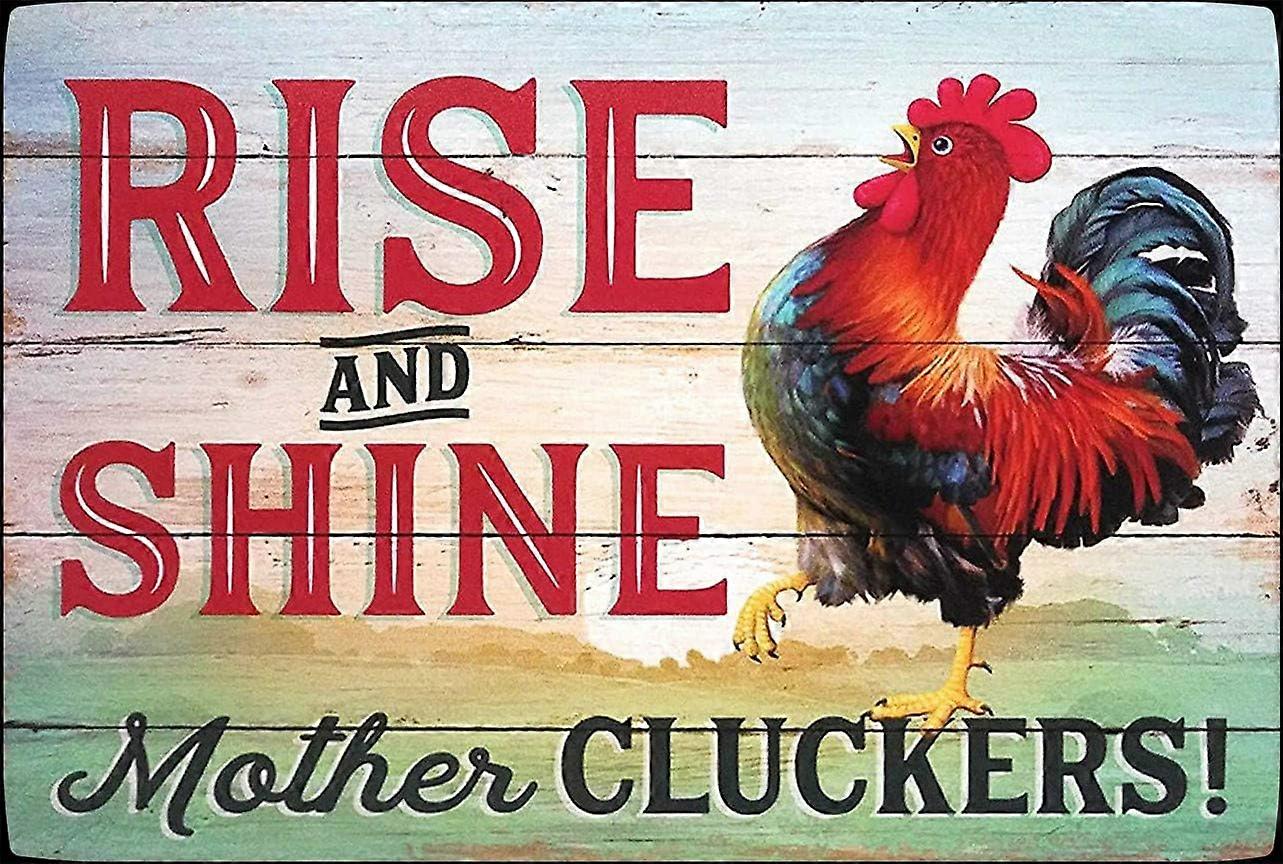 Gloryboom Rise and Shine Mother Chicken Decor Chicken Sign Funny Chicken Chicken Metal Tin Sign Wall Plaque for Home Kitchen Bar Coffee Shop 8x12 Inch