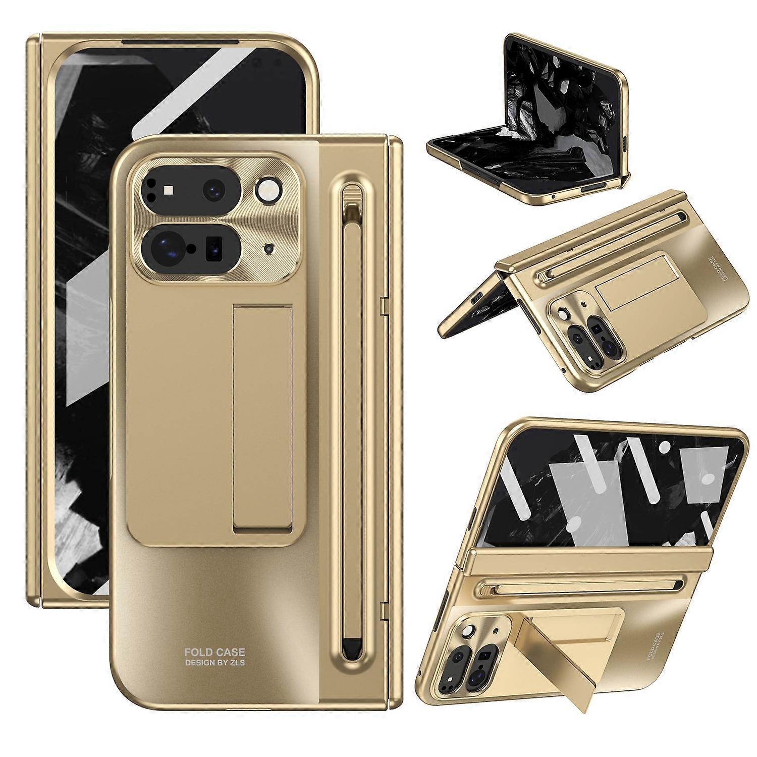 For Google Pixel 10 Pro Fold Case Kickstand Hinge PC Phone Cover with Tempered Glass Film, Stylus
