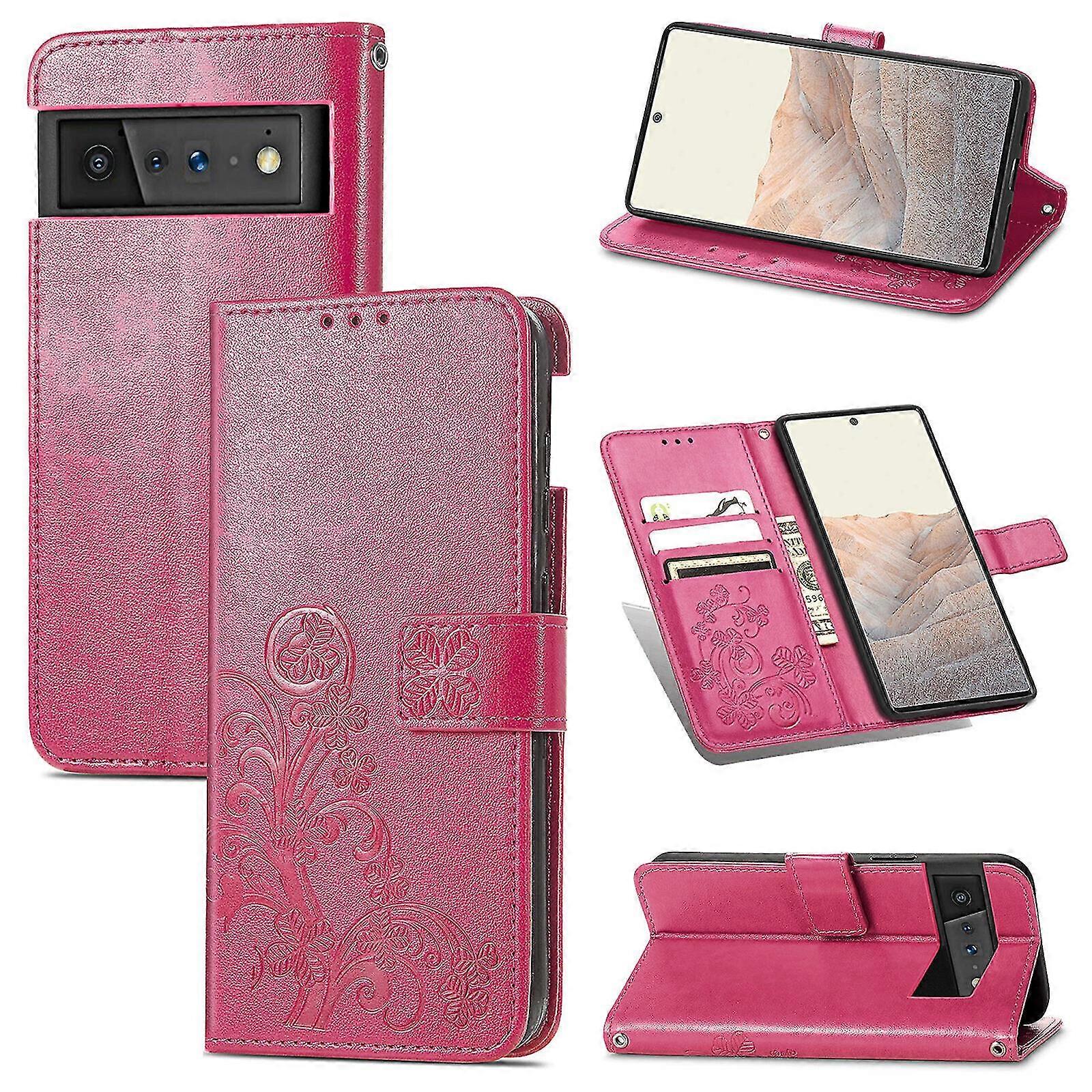 Case For Google Pixel 6 Pro Cover Wallet Clover Embossed Protective Leather Phone Case Magnetic - Rose Red