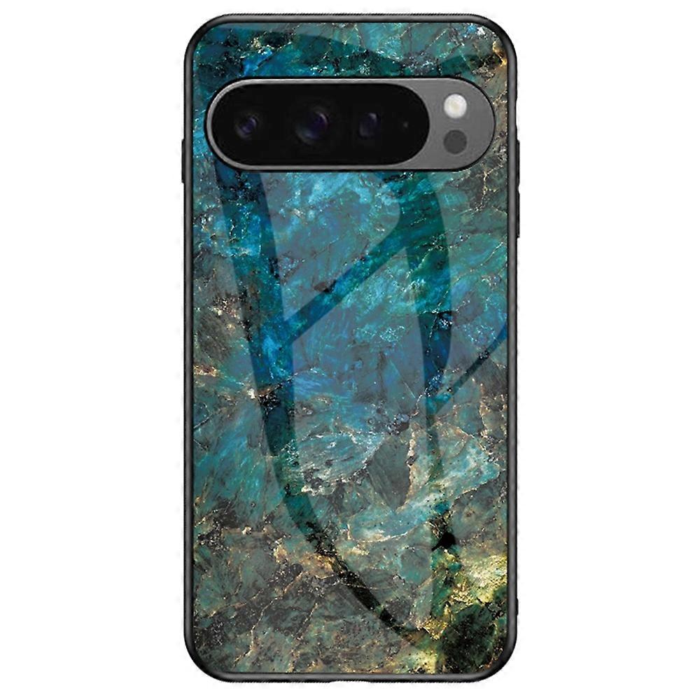 For Google Pixel 9 Pro XL Case Marble Pattern Tempered Glass+PC+TPU Protective Phone Cover - Emerald