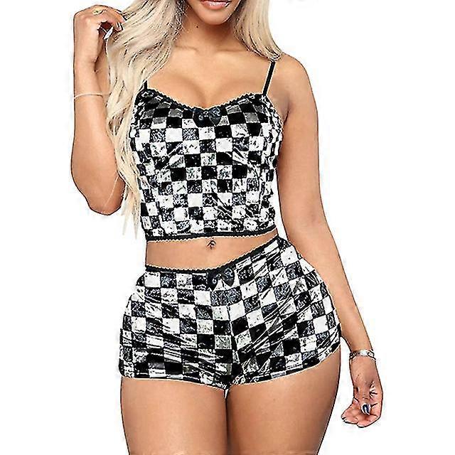 Guoguo Women's Velvet Sleepwear Fashion Sexy Spaghetti Strap Shorts Pajama Set