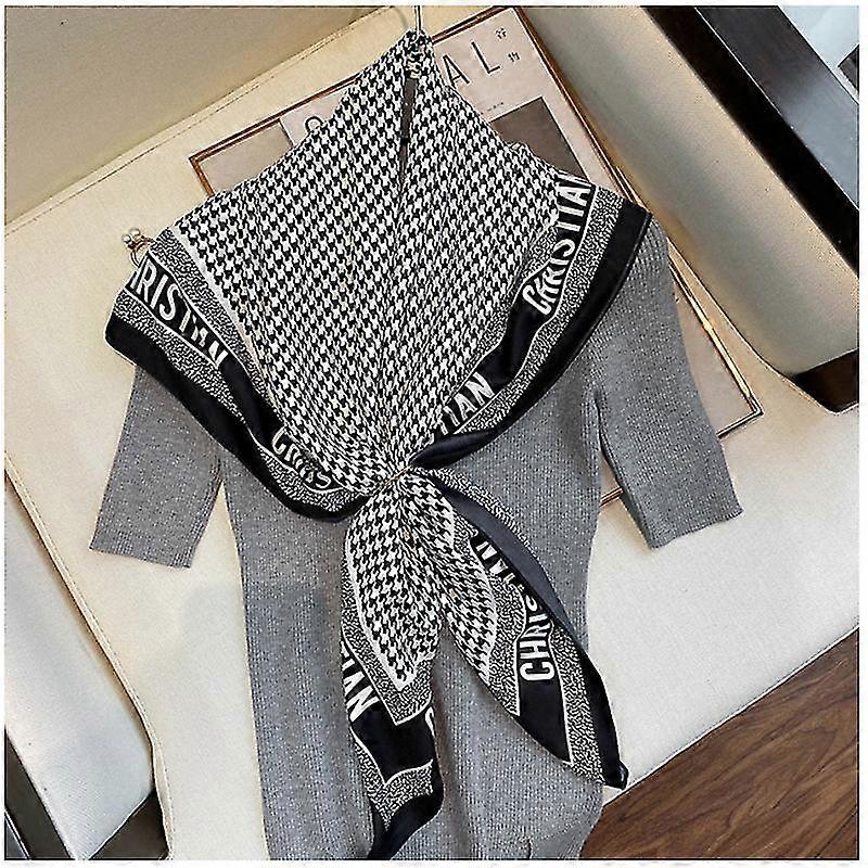 GYFDYM Classic 90*90cm Fashion Plaid Scarves Women Foulard Geometric Totem Square Office Lady Bandanna Muffler Muslim Headscarves