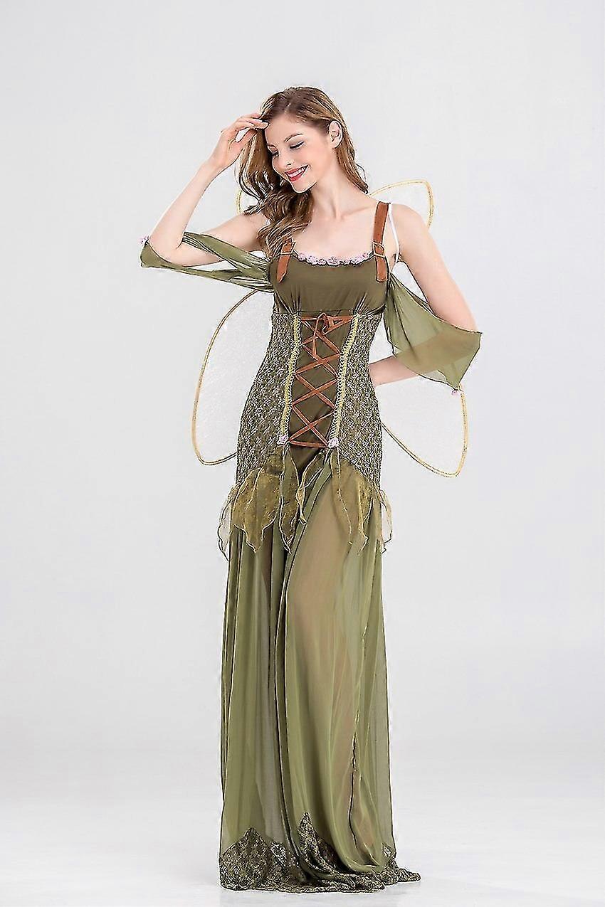 GYFDYM Women Angel Elf Flower Fairy Tinker Bell Costume Halloween Party Fairy Tale Green Forest Cosplay Fantasia Dress