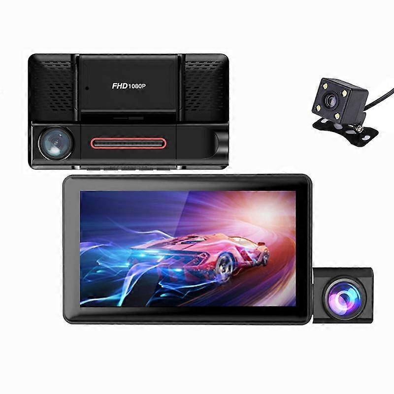 H208 4" IPS Screen 2.5D 3-Lensar Dasham Full HD 1080Par Video Recorder 120-Degree Wide Angle