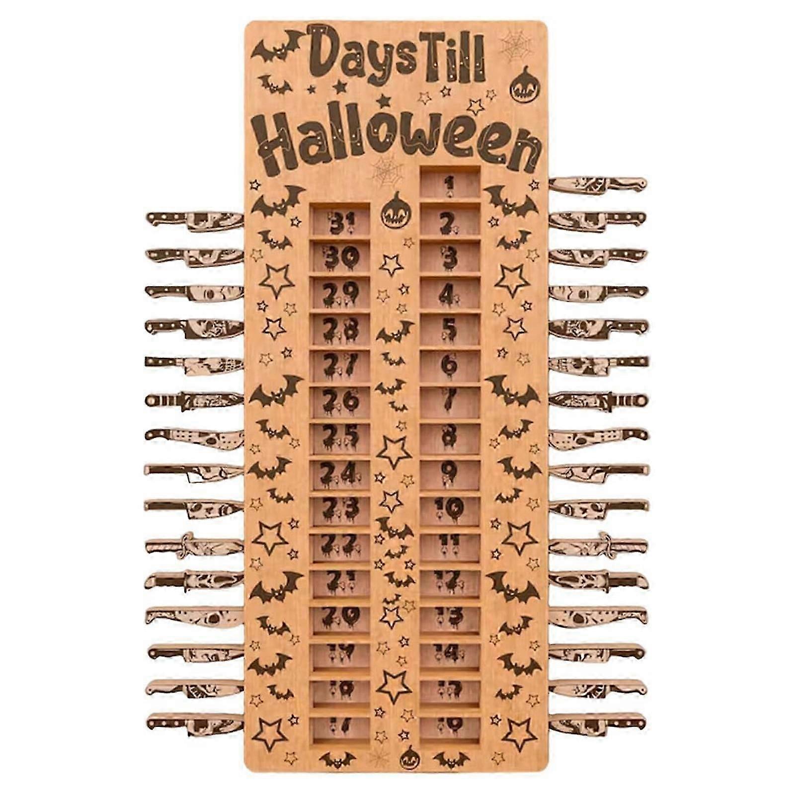 Halloween Advent Countdown Calendar,Coffin Calendar w/31 Removable Wooden Handle-T2
