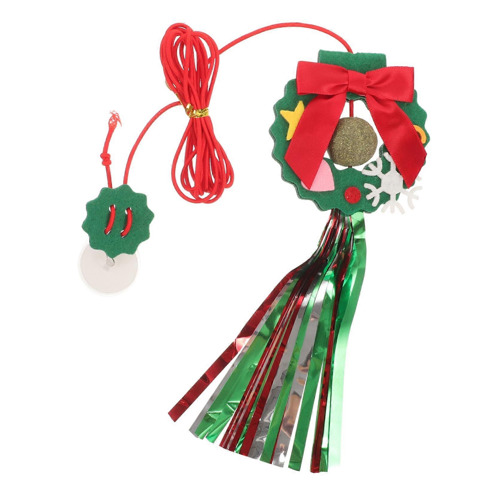 Hanging Cat Toy with Felt Christmas Wreath Design, Interactive Elastic Toy for Self-Play, Ideal for Cat Lovers