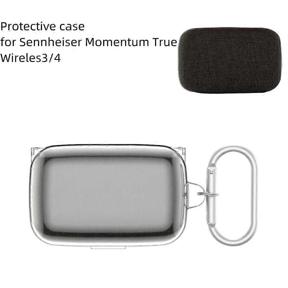 Hard Shell Protective Case for compatible with Sennheiser Momentum True Wireless 4/3, Shockproof Anti-Scratch Clear Cover with Carabiner