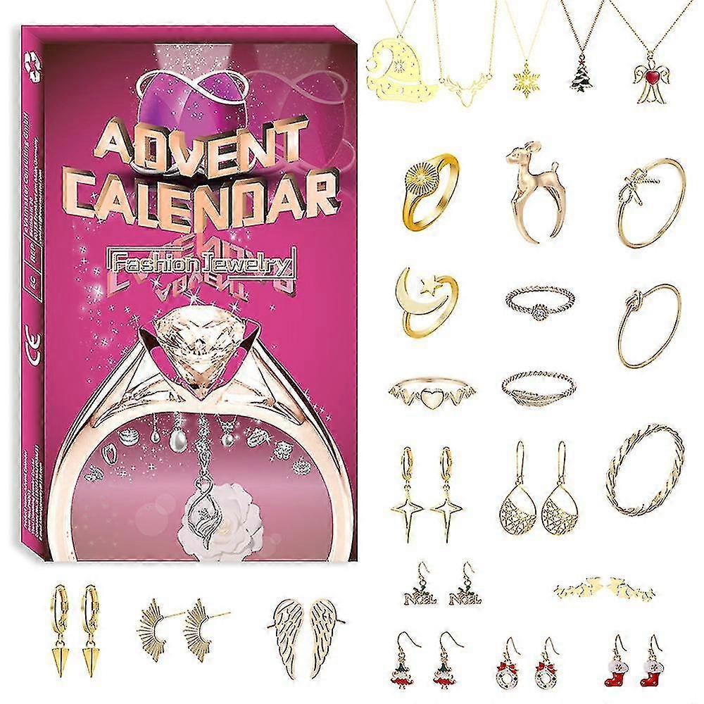 Hcankcan Surprise Jewelry Blind Box 24 Days Christmas Countdown Calendars Rings Necklace Earrings Bracelet Xmas Advent Countdown Calendar Gift