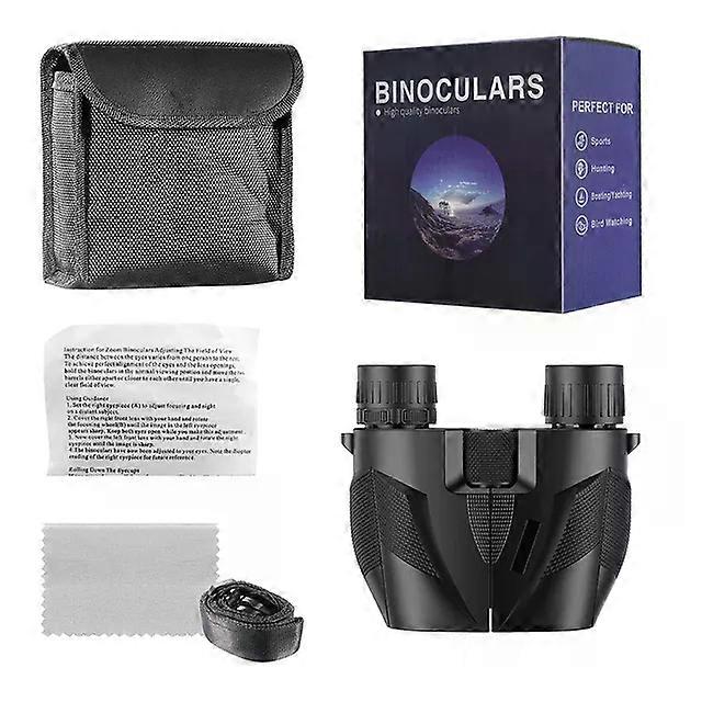 APEXEL 10x25 Binoculars BAK4 Prism High Powered Zoom Telescope 112m/1000m Hunting for Hunting Sport bird-watching Product :Optical Telescope Binoculars 10X25 High Clarity Material: plastic Color: Black Size: 100*110*50mm Magnification: 10X Objective diameter:25mm Field of View: 112/1000m Objective and green film:yes Built-in coordinates:yes Distance:5-1000m Exit Pupil Diameter: 2.5mm Prism: BAK4 Sheath: rubber skin Angle: 6.2 degree Minimum focusing distance: 5.0m Eye width(IPD):58-72mm Focus system: Center Prism system: Porro(BAK4) Water fog: yes Perfect tool for Sightseeing, Watching Match, Concert, Bird-watching and Hunting Package includes: 1 x Telescope 1 x Carry Bag 1 x Strap 1 x Lens cloth 1 x User manual 1 x Retail box Pictures: 10X25 HD Foldable Paul Binoculars----the world is in your side Light weight and Portable 16mm eyepiece, 25mm large objective lens Adjustable Interpupillary Distance