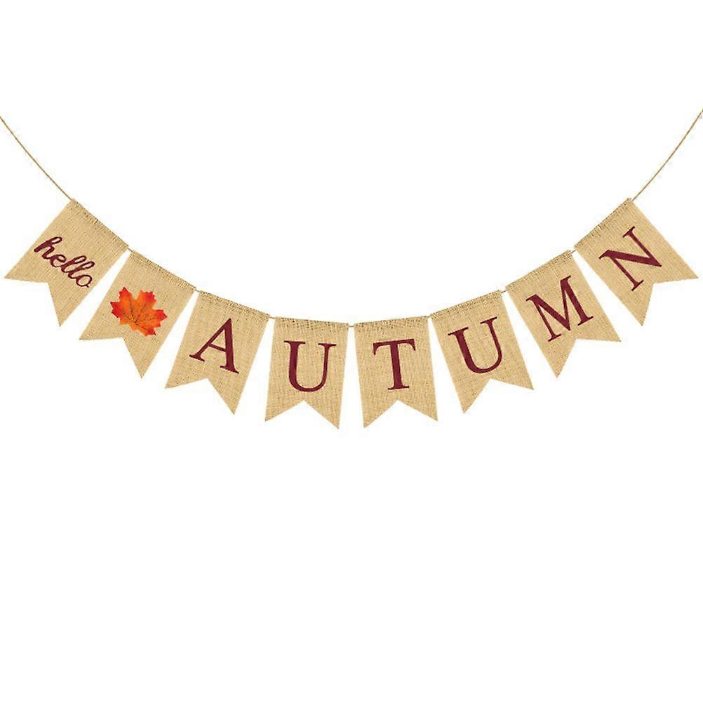 HELLO AUTUMN Brown Letter Printing Banner Maple Leaves Bunting Linen Swallowtail Garland Fall Festival Flag Party Supplies Party Layout Decorations