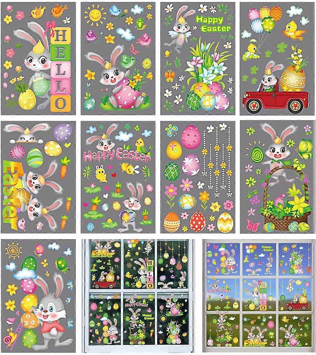 Hello Easter Window Cling Stickers – 9 Sheets Double-Sided Decals for Easter & Spring Window Decor