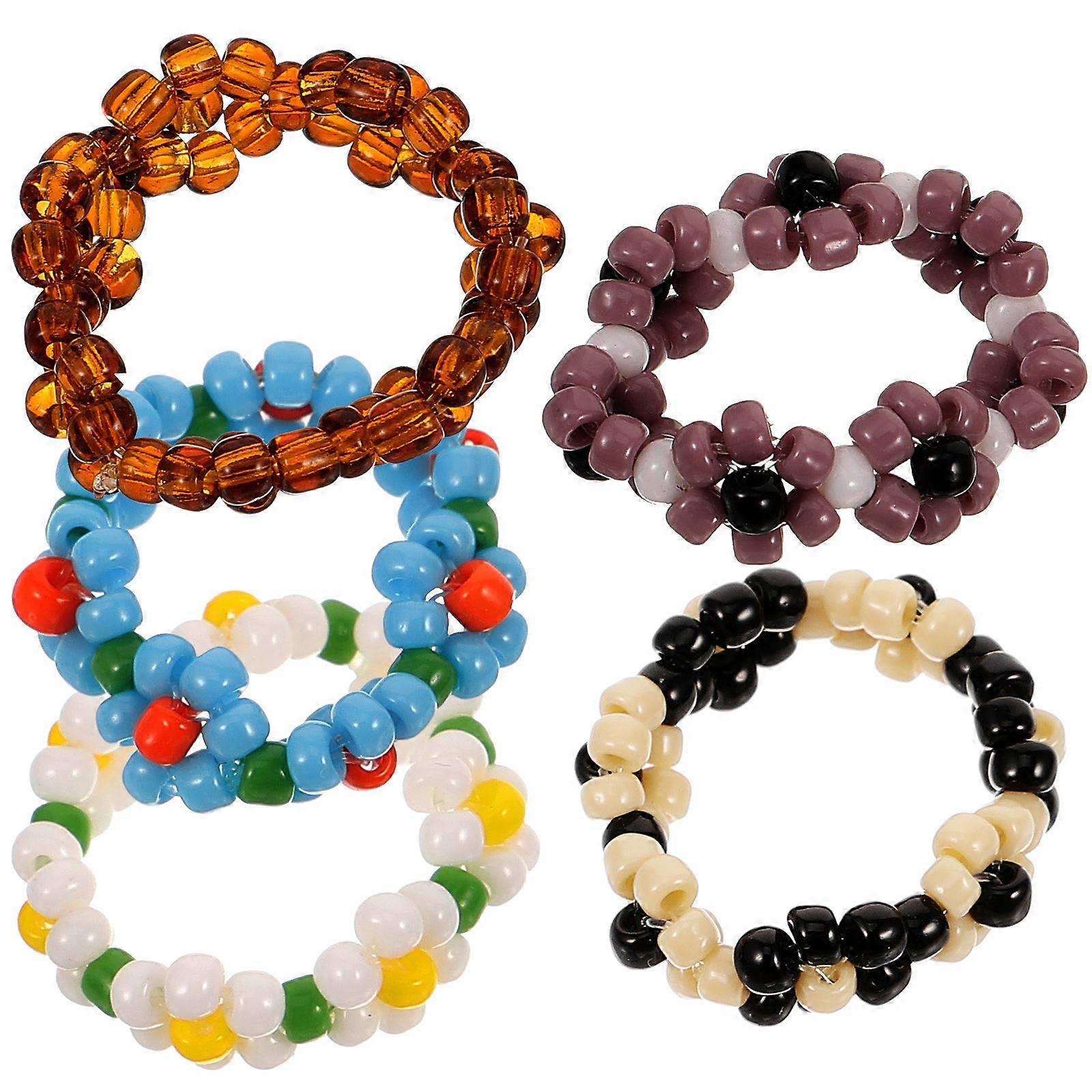 Hemoton 5pcs Adorable Floral Beaded Flower Finger Rings for Ladies