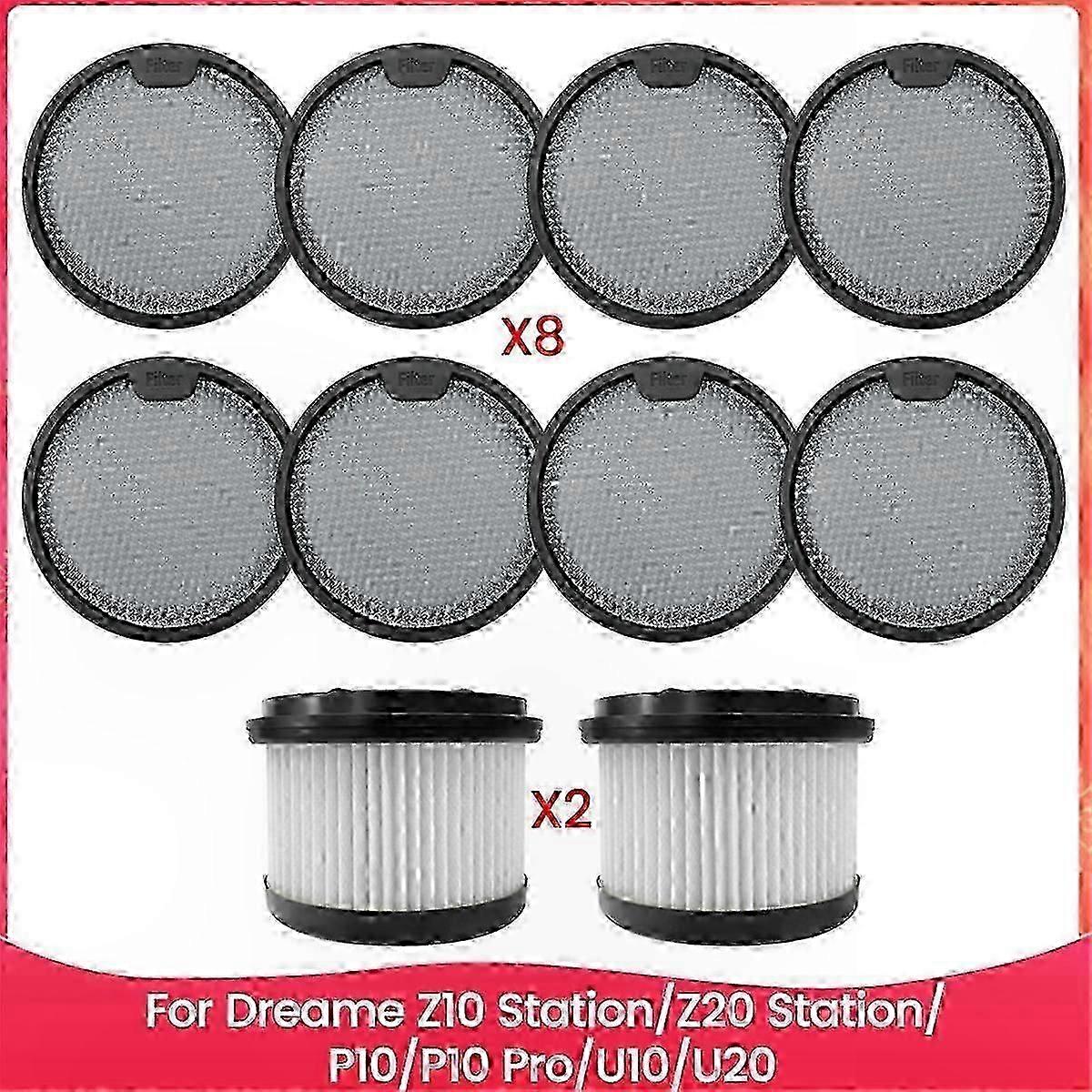 Practical: This vacuum cleaner replacement filter is designed for Dreame Z10, Z20 Station, P10, P10 Pro, U10, and U20 vacuum cleaners to ensure optimal performance. Reduction of Airborne Particles: This premium filter significantly reduces dust, pollen, and other airborne contaminants, enhancing indoor air quality. Its advanced filtration technology helps create a healthier living environment, making it suitable for individuals with allergies or respiratory sensitivities. Reusable: The vacuum filter is washable and reusable. To reuse, allow the filter to dry completely. Clean the filter regularly to maintain maximum suction power and ensure it is fully dry before reinstalling. User-Friendly Installation: These accessories are easy to install and compatible with the specified vacuum models. Designed for a precise fit, they can be replaced quickly without the need for professional assistance. Maintenance Suggestions: To maintain vacuum performance and longevity, regularly clean and replace components as needed. These accessories help sustain efficient operation and thorough cleaning across all areas. Function: Consumable Use Environment: Home use Color: As shown Material: Plastic Package Contents: 8 x Pre-filter 2 x Post-filter Note: The package includes only the items listed above. Other products are not included. Note: Lighting and display differences may cause slight variations in color between the image and the actual item. Measurement may vary by +/- 1-3 cm.
