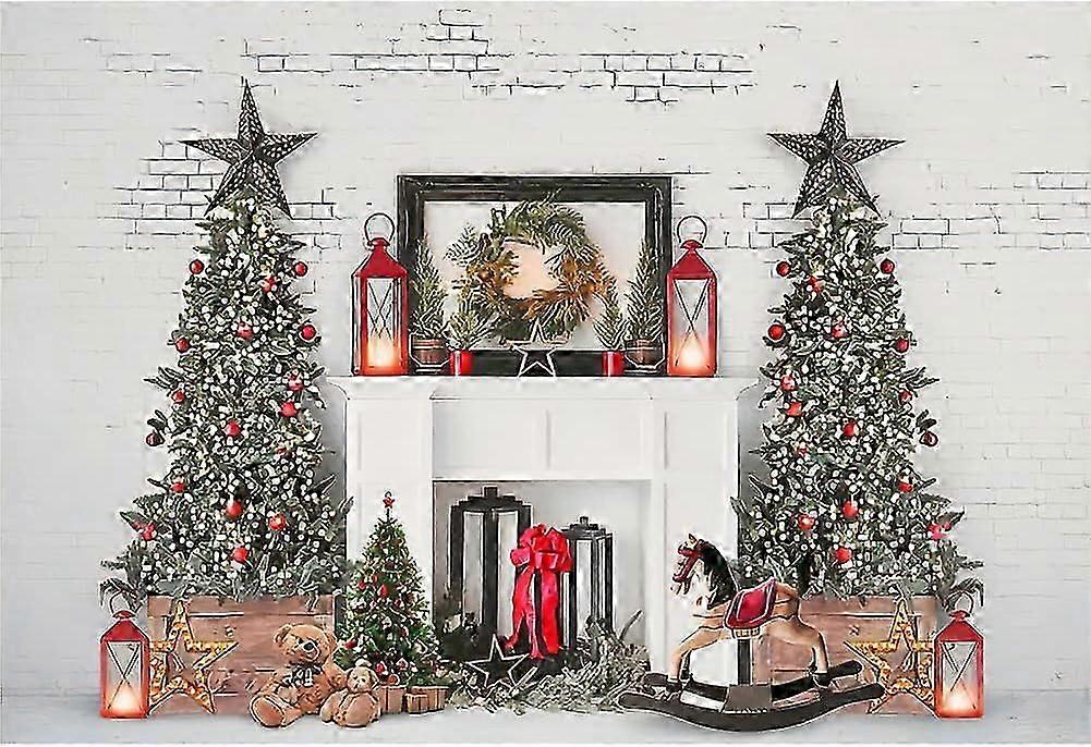 Heyone 3x2.5m Vinyl Christmas Backdrop Living Room House Interior Fireplace Backdrop Xmas Tree Photo Background for Party Photo Shoots Studio Props Ph