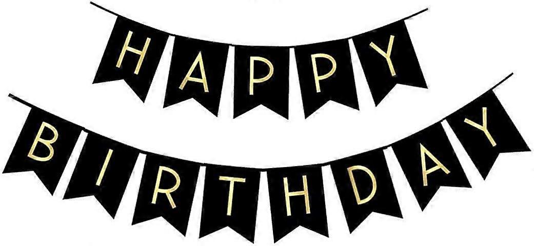 Heytea Black Happy Birthday Bunting Banner with Shiny Gold Letters Party Supplies