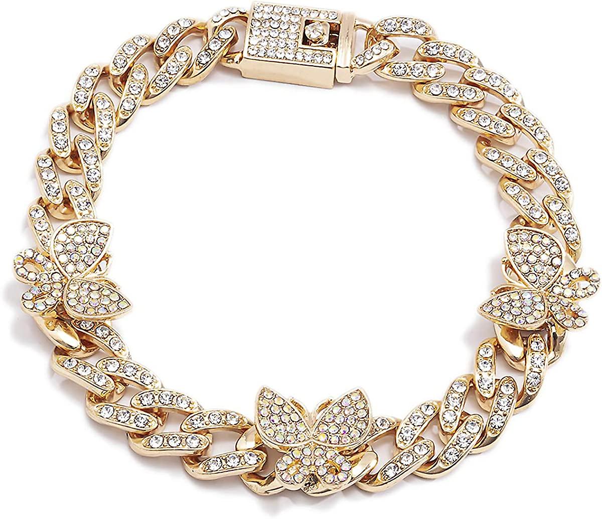 Heytea Shiny Rhinestone Butterfly Anklet Hip Hop Cuban Link Ankle Chain Bracelet for Women Teen Girls Cute Fashion Music Party Rave Anklet Jewelry - -