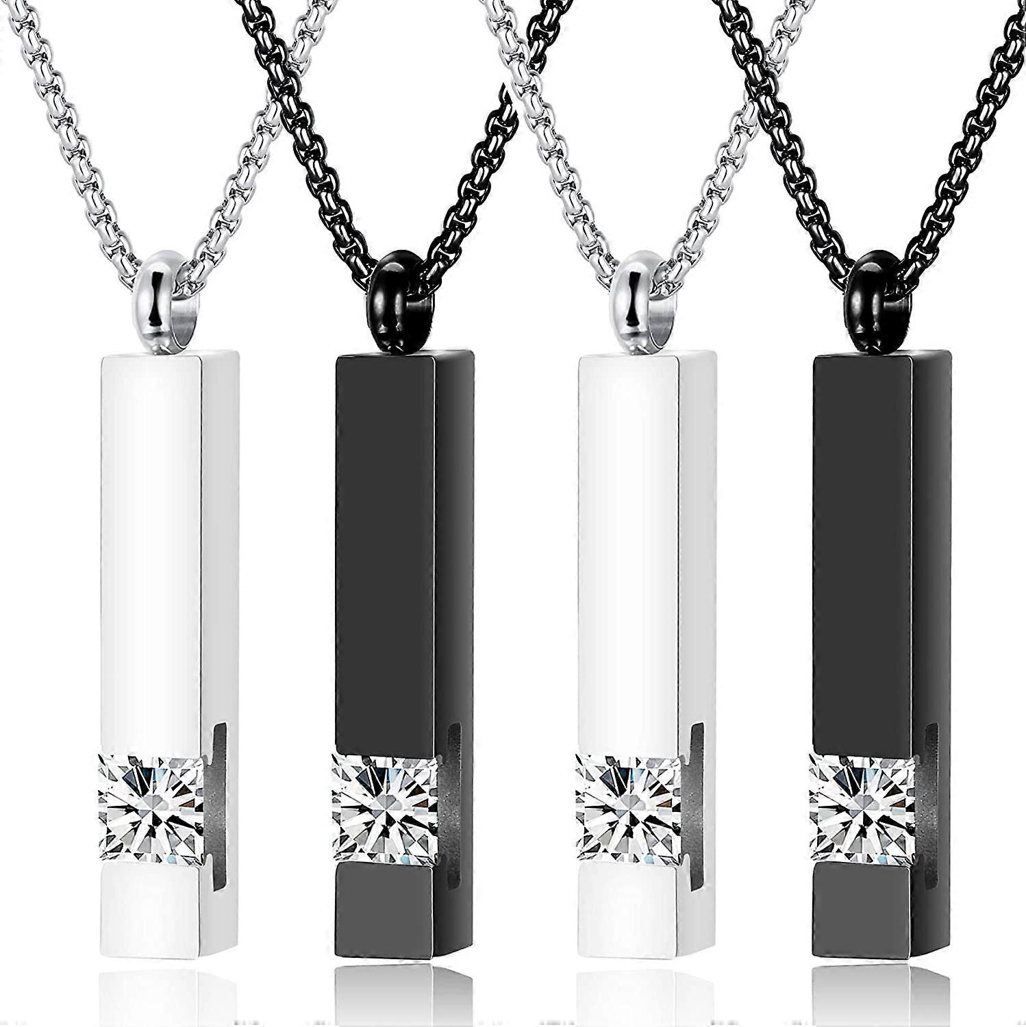 Heytea 2 Pcs Urn Necklaces for Ashes Memorial Cremation Urn Necklace Stainless Steel Black Silver Tone Bar Pendant Necklace Ashes Keepsake Jewelry wit