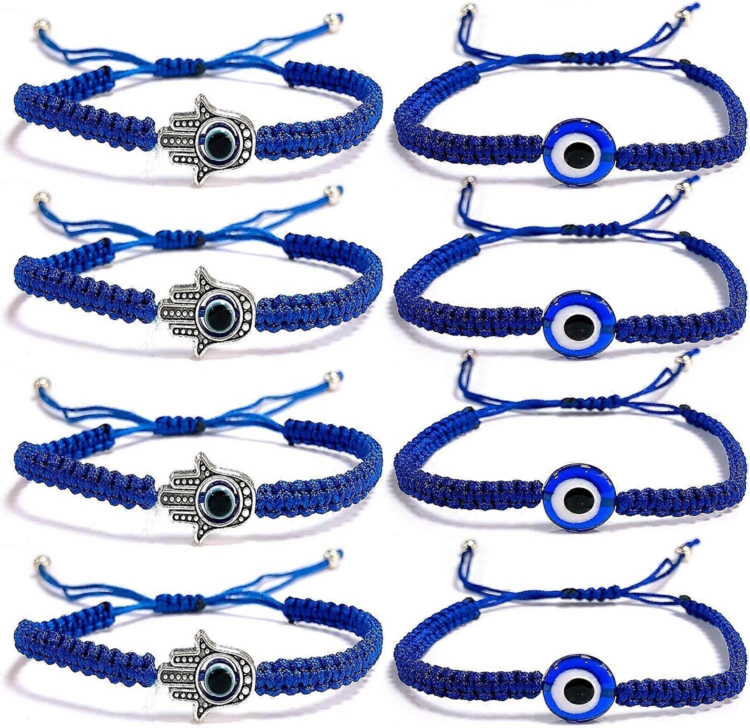 Heytea 8 Pcs Handmade Evil Eye Braided Adjustable Strench Strand Red Black String Bracelet Set Protection and Good Luck Rope Cord Jewelry for Women Me