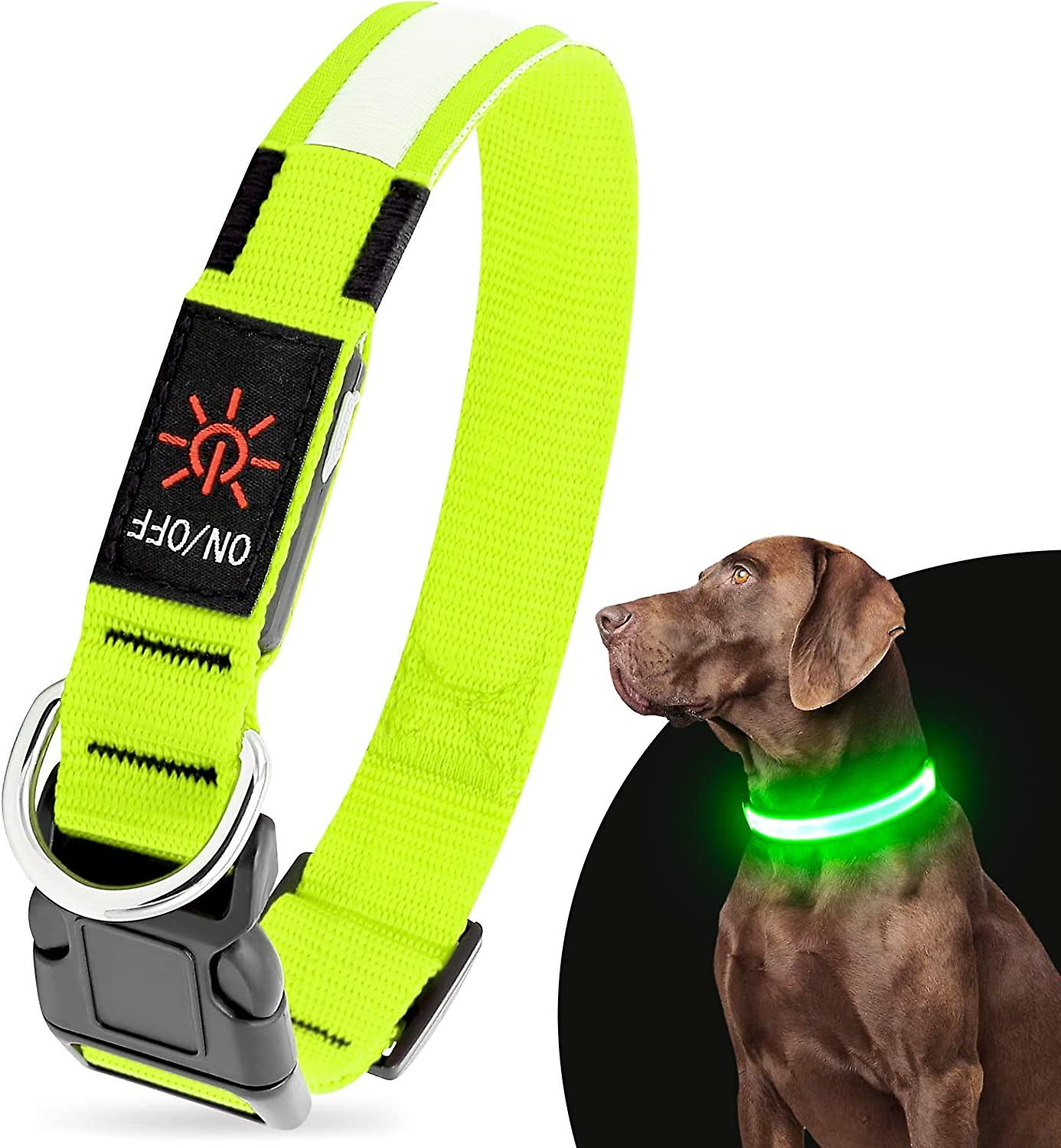 Heytea LED Dog Collar, USB Rechargeable Light Up Dog Collar Glow in The Dark (Green, Medium)