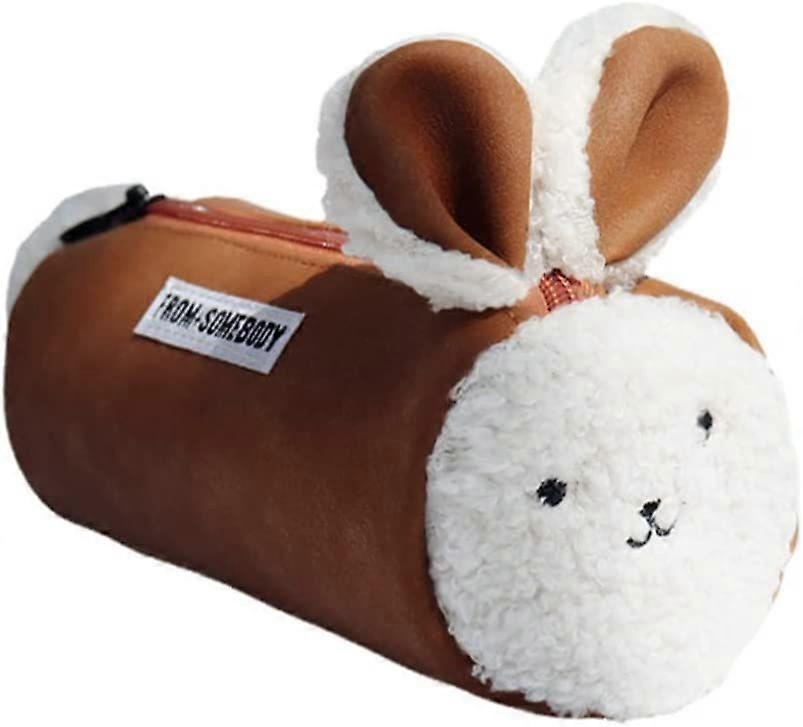 Kawaii School Supplies Heytea aughty Rabbit Pen Case Plush Multi-Functional Large-Capacity Pencil Pouch (Brown)