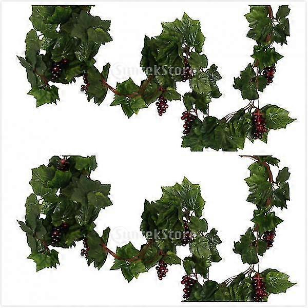 hg 2pcs 8.2ft Artificial Silk Garland Green Grape Vine And 8 Grapes Rattan