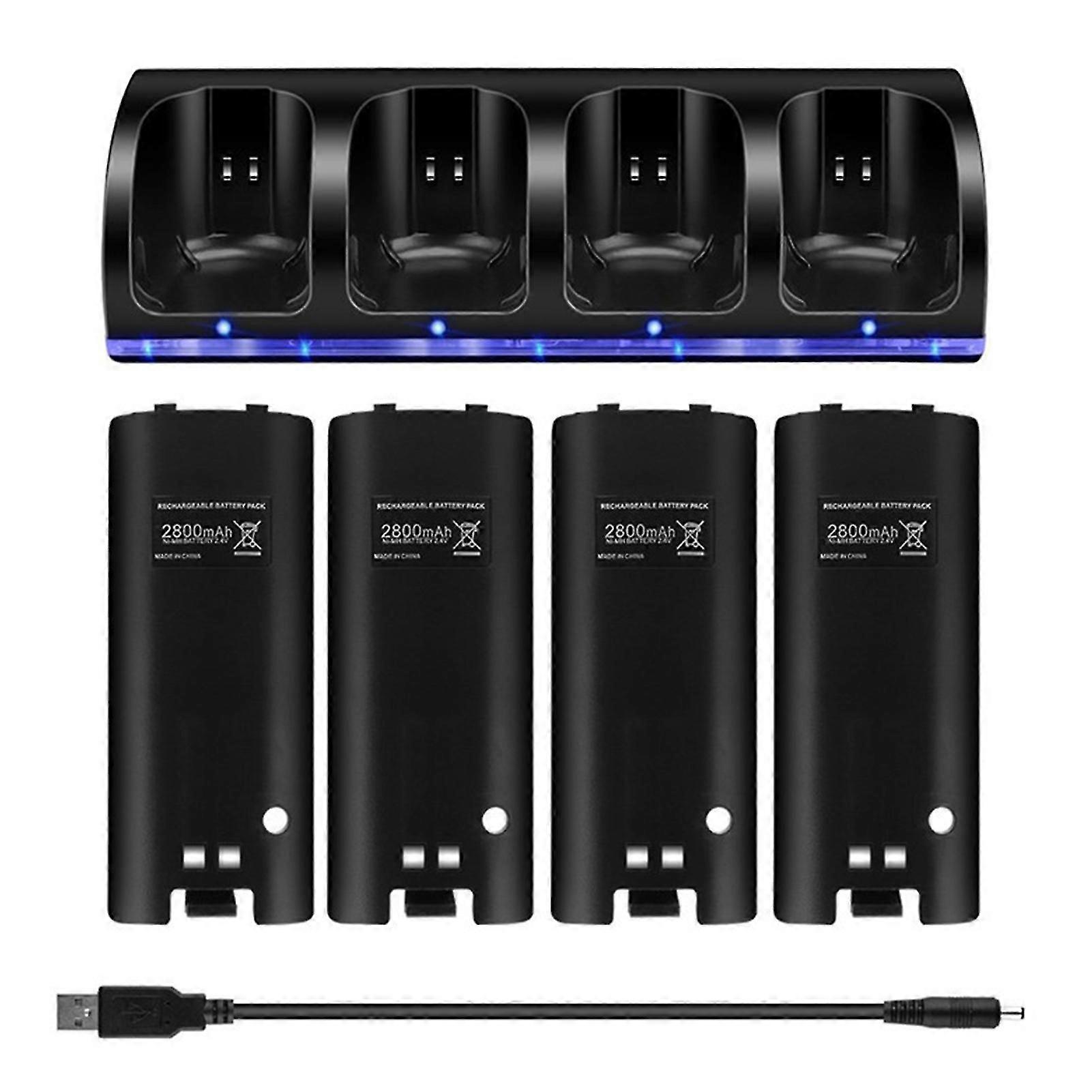 Specifications: Made of premium ABS material, the game console remote controller is durable to use. Designed with 4 ports, it can charge for 4 joysticks simultaneously. Over load protection is provided, which is safe to charge. With large capacity battery, it has long standby time. It has LED indicators, red for charging and blue for fully charged. It is compatible for Nintendo Wii U/Wii. Item Name: Gamepad Charger Material: ABS Battery Capacity: 2800mAh (Included) Input Voltage: DC 5V Output Voltage: DC 2.8V Output Current: 350mA Compatible: for Nintendo Wii U/Wii Features: 2 Ports, Safe, Game Console Accessory Size: 19cm x 5.58cm x 5.58cm/7.48" x 2.2" x 2.2" (Approx.) Notes: Due to the light and screen setting difference, the item& 39;s color may be slightly different from the pictures. Please allow slight dimension difference due to different manual measurement. Package Includes: (Gamepad Not Included) 1 x Gamepad Charger 4 x Batteries 1 x Charging Cable