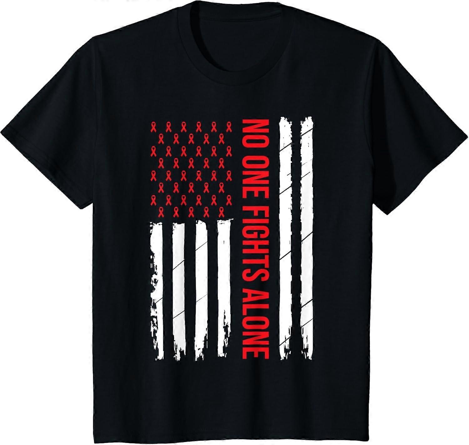 HIV Awareness Red Ribbon Men Women AIDS Fight USA Flag T-Shirt