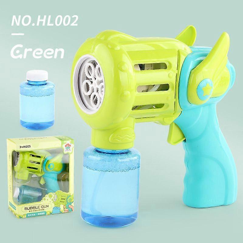 HL002 green bubble gun 410.6G# Tiktok Hand held Five hole Automatic Bubble Gun Children's Leisure Toys Electric Sound Light Bubble Gun Wholesale