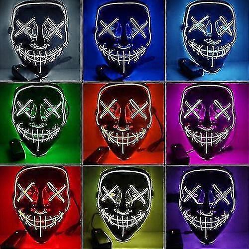 Hmwy Halloween Horror Mask Led Cosplay Smiling Stitched El Wire Light Up Mask Adult Unisex White