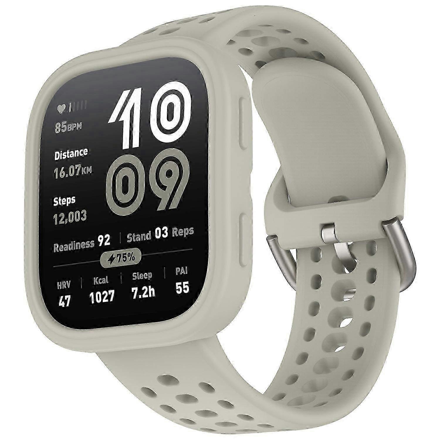 Silicone Breathable Watch Band with Protective Case for Huami Amazfit Bip 6 A2435 - Grey Replacement Strap