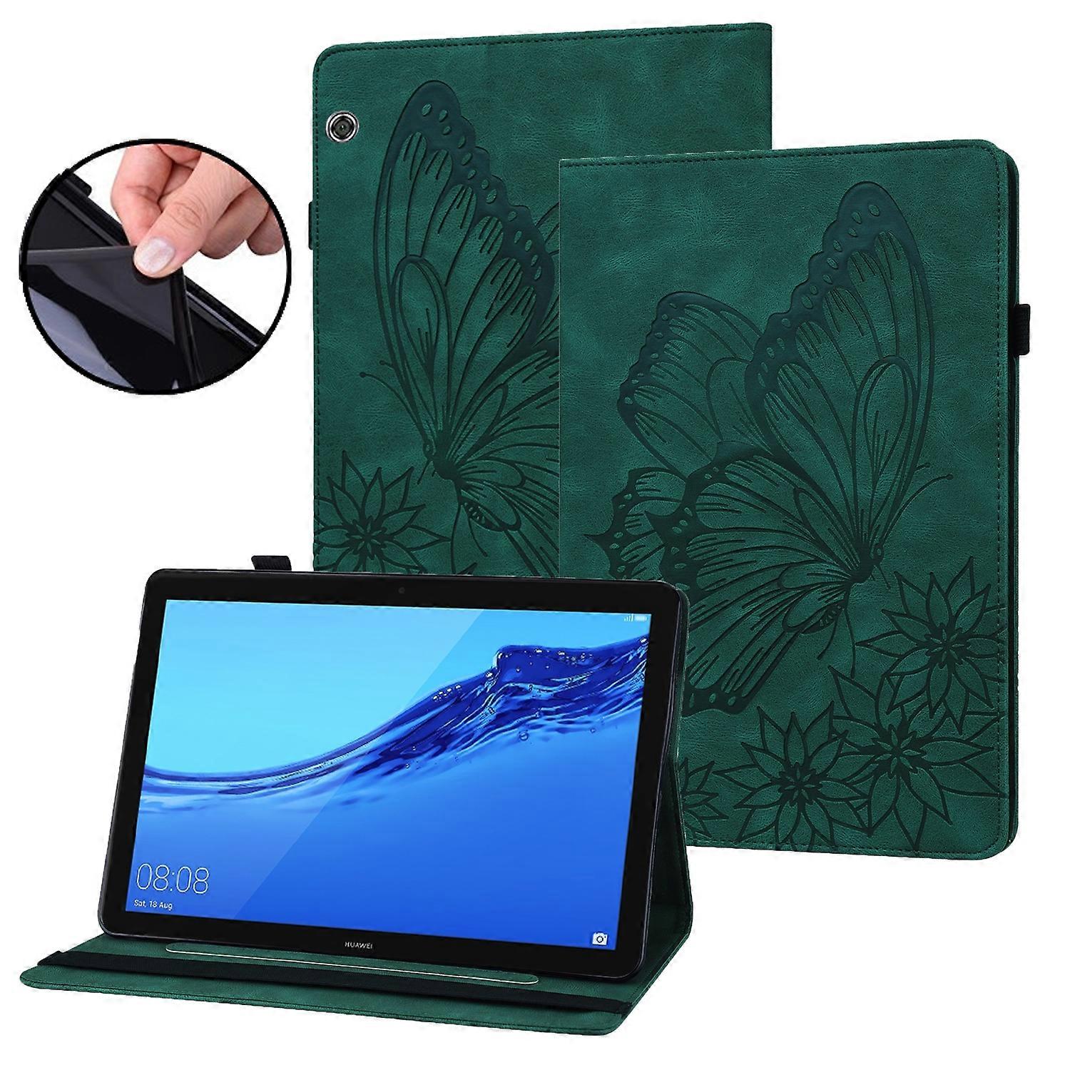 For Huawei MediaPad T3 10 Big Butterfly Embossed Leather Tablet Case(Green)